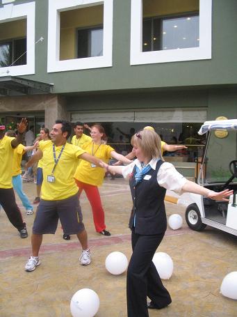 Уставшие после не очень приятного перелета, еще одетые в почти зимнюю одежду , голодные (обеденное время) и еле живые тельца манагеров привезли в отель Санрайз Ресорт в Сиде. Наивные манагеры расчитывали быстренько заселиться в нумера , принять душ, переодеться в соответствующую одежду и покушать. И у них был повод на это расчитывать, по программе тура так было заявлено. Ахха Далее такая картина. Пальмы, солнце, люди в плавках и купальниках и кучка манагеров носится по территории отеля осматривая ее, басейны, горки, бунгала, пляж, рестораны (а там так все вкусно пахнет). И так полтора часа. В конец измученные догадались спросить, а где мы сегодня будем жить? И когда представитель отеля сказал, что тут и будем...дружный вопль - А за каким собсно вы нас тут гоняете? У нас еще пол дня , чтоб самим все посмотреть И нас отпустили.