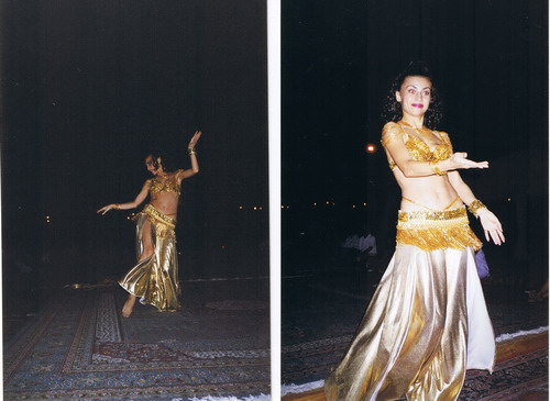 Что еще входит в экскурсию "джип-сафари". Значицца так, сначала скачете по барханам, далее приезжаете у же в бедуинскую деревню, там можно заняться песочным серфингом (на самом деле не знаем как это называется, но на досках катаетесь по барханам), катание на верблюдах, рисование на теле всякой ерунду хной, напитки разные от безалкогольных до слабо алкогольных , фотографирование в бедуинских одеждах, кальян, ужин-шведский стол (шашлык-машлык, плов, фрукты, арбузы-дыни, салаты-малаты), вечернее шоу - танцы живота и сотальных частей тела в исполнении гарячей девушки. За все это удовольствие платится 50 долларов на взрослого и 30 долларов на человека.