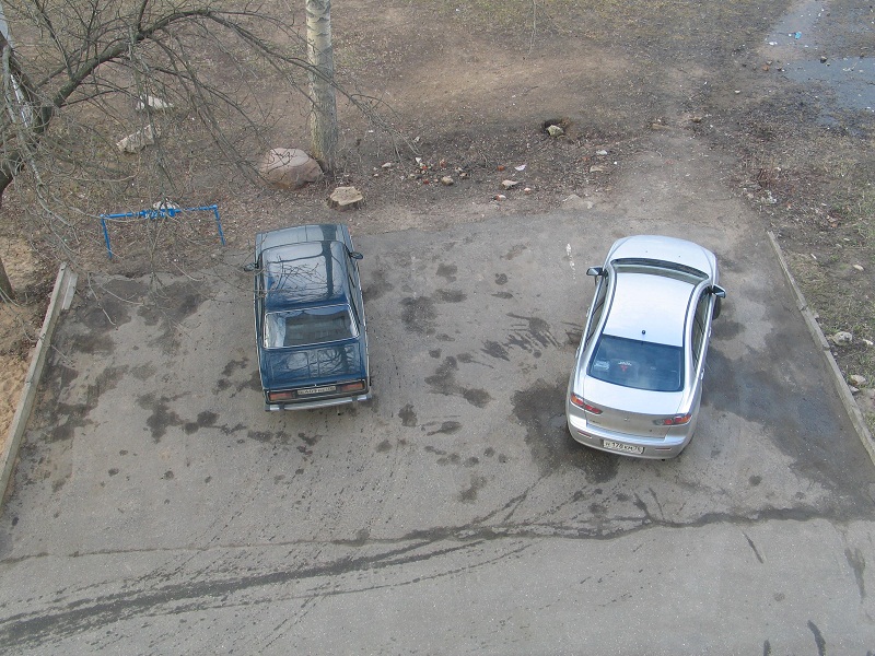 Лансер правда не на весь день запарковался, а на пару часов, но тем не менее. Стоянка эта спокойно вмещает 4 авто.
