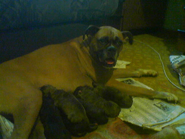 этой ночью принял роды. Тяжелые, надо сказать. Собака первого родила в 23.07, затем тужилась полтора часа.Успел на измену сесть.Третьего спустя минут сорок после второго. Застрял третий в петле, пришлось аккуратно вытаскивать.Так как собака уже обессилила, поэтому мне самому пленку оплода рвать и искусственное дыхание делать третему.Ну а затем последние 4 как по маслу. Всего значит 7. ЗЫ это я хвастаюсь какой я молодец зыы а щенки - 4 тигровых, 2 черных и 1 коричневый