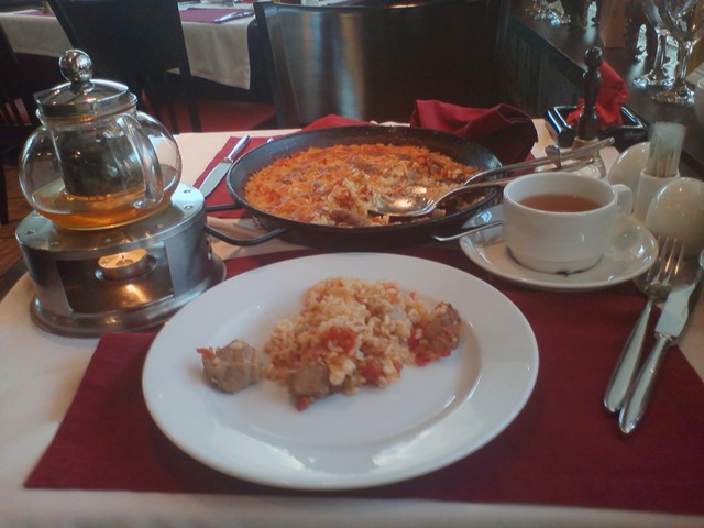Народу под вечер полно... Зал оформлен нормально... но есть е слишком уютные и удобные места.... Есть Ви-Фи... Шел спецом попробовать паэлью, ибо до сих пор запомнился вкус той, которую ел на рынке Боккерия в Барсе....  В меню написано, что паэлья это блюдо на 2-4 человек... Я для себя одного заказал мясную...