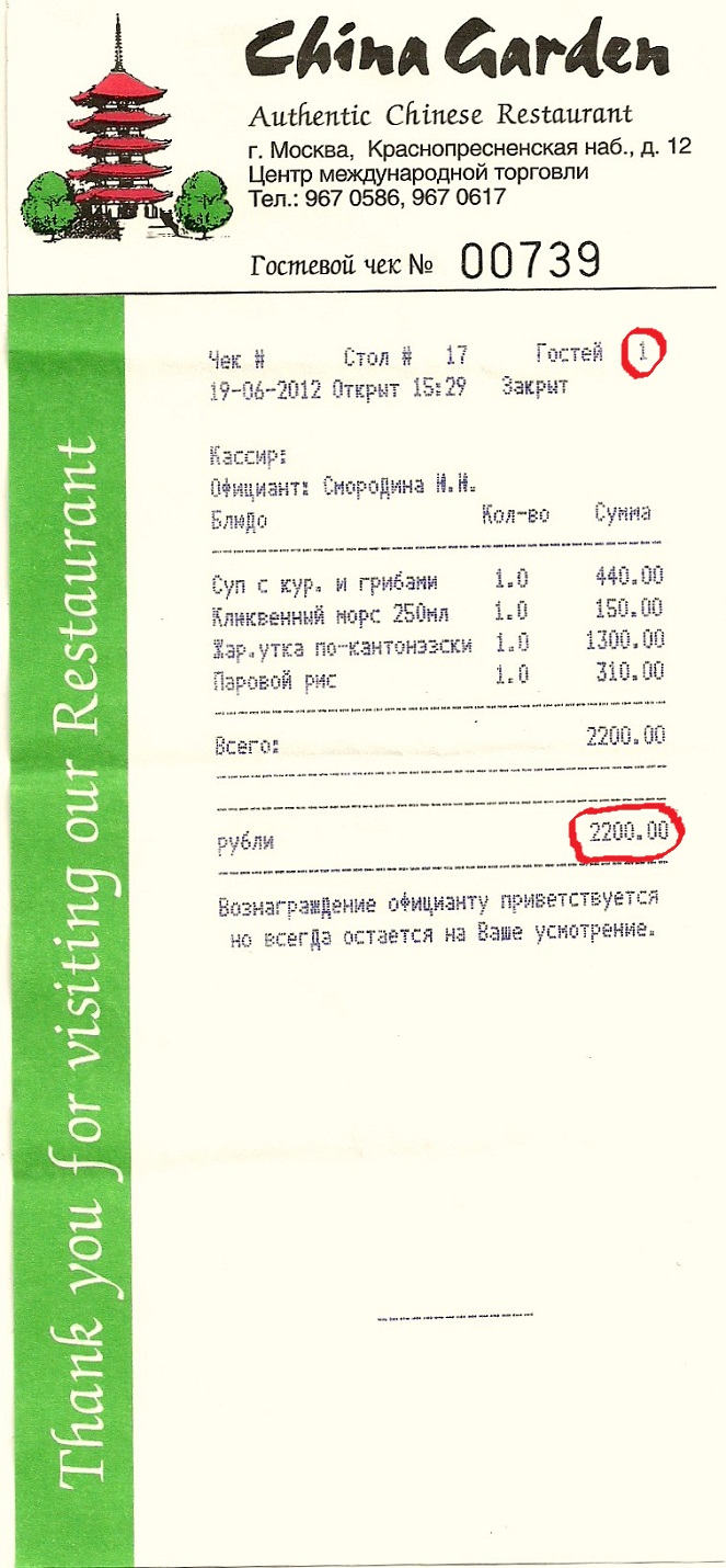 . * * Re: Ресторан кЕтайский, цены французские. "China Garden"  Тревожный Пассажир    20/06/2012 00:00:55