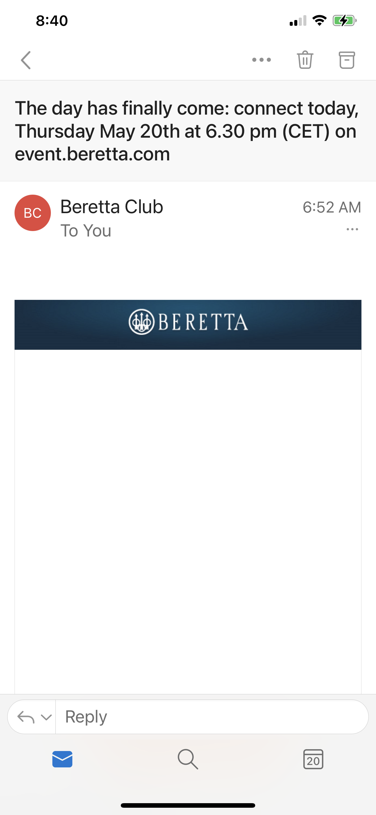 * Beretta Event today at 6:30 pm (CET) May 20  Заглянул Мимоходом    20/05/2021 16:42:54