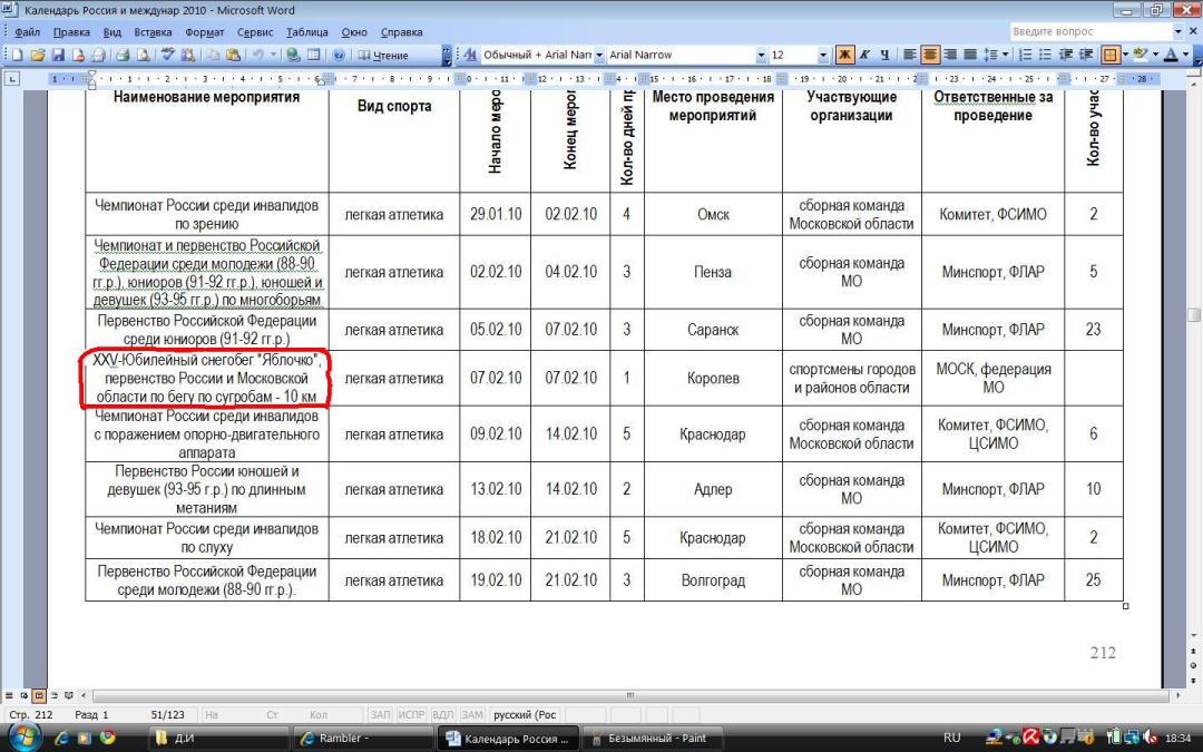 Сегодня просматривая календарь соревнований на 2010 г., вывешенный на сайте Мособлспорткомитета, наткнулся на то, чего даже не предполагал может быть