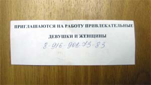 Обычно мы встречаем объявления типа "Привлекательные девушки приглашаются на высокооплачиваемую работу" в газетах бесплатных объявлений или МК, при том как правило в непоследственной близости от объявлений типа "Досуг. Сауна. Дешево". Подчас - с тем же телефоном
