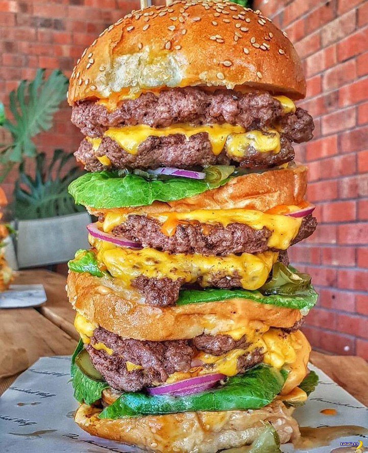А все эти многоэтажные бургеры - это всё хрень для привлечения внимания, не более того. Достаточно 2 булок, 1 котлеты и начинки. Если одним бургером не наелся, возьми еще один. А не бургер в который напихали 3 котлеты...