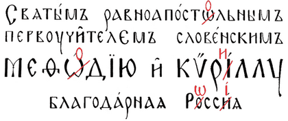 В имени Мефодия и слове «апостол» высечена буква «омега»,