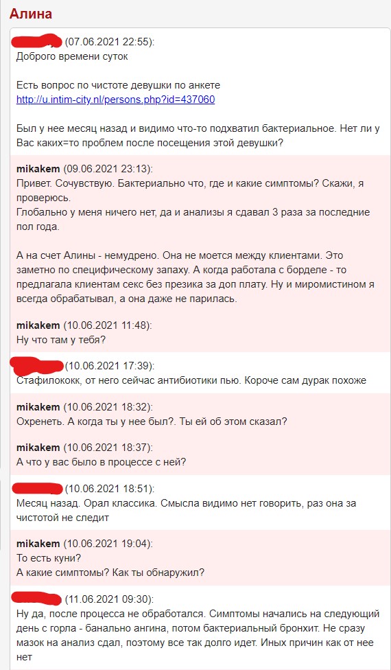 Добрый день. Я уже и забыл о существовании данной САБЖ, но она не дает мне себя забыть. 1) Когда меня заблочили на ИС - она так была рада, что по ВОТСАП писала мне такие лестные гадости - мама не горюй. Что я сижу на ИС и ищу молоденькие писечки, и это самое легкое, и что правильно меня заблочили и тд. Доказать не могу, прошло много времени и я эти сообщения стер. 2)Данный САБЖ работала в бордеде на Фили, потом прыгала на Вавилова, Дубининскую и обратно. Потом работала через ангентство. Везде ее выгоняли. Она воровала вещи и портила имущество. Это факт, тк мне это говорили люди, которые не знакомы друг с другом, а говорили одно и тоже. И да, познакомился я с ней в первый день ее работы. 3) Я всегда пишу отзывы по-факту, не беря во внимания предыдущие встречи и заслуги. Поэтому, мои первые отзывы про САБЖ позитивные, а потом, спустились в негатив. 4) Ну и ГЛАВНОЕ. Раз фея не оставляет меня в покое я решился, в доказательство моих слов и отзывов выложить переписку с ИС из ЛК, где Дон, чей НИК я замазал, сам пишет мне, что заразился от данной САБЖ. 5)САБЖ сама себя "спалила" утверждая, что Я и Дон Майбах - это один и тот же человек. Бедный Майбах. Хорошо, что он в Египет улетел и спокойно отдохнет там. Ну, вы то уж все в курсе кто есть кто.