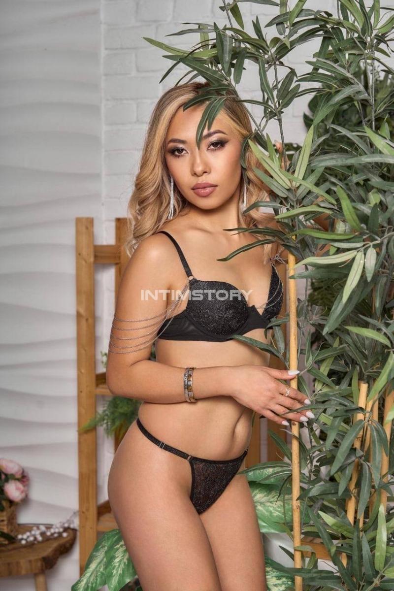 ТТХ. Всё как на фото. Лицо очень симпатичное, восточное, выглядит моложе заявленного возраста, максимум на 25, имхо. Глаза карие, с большими нарощенными ресницами. Губы большие и красивые, думал подкаченные, но сказала: "у меня всё натуральное".. Волосы прямые, светлые с мелированием (сказала, что недавно сделала), ниже плеч (свои чёрные). Рост 160, вес сейчас 47кг, сказала, что "за неделю работы в салоне похудела на 2кг". Взвешивалась. Грудь очень маленькая - 0,5 как у девочки подростка, с торчащими маленькими сосками (чувствительные к ласке). Фигура изящная и тонкая - модельная, пропорциональная и достаточно выраженная, на вскидку параметры: 60-88. Животик плоский как струна (не спрашивал, но думаю нерожавшая). Пирсинга, тутух, шрамов и растяжек - нет. Кожа гладкая и душистая. Попа круглая и упругая. Ноги стройные и красивые. В общем куй на неё (как говорится) встал с порога.. Мой формат. По-русски говорит как мАсквичка.