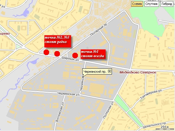 На этой точке (на карте точка № 1)постоянно работают 3 девки.
